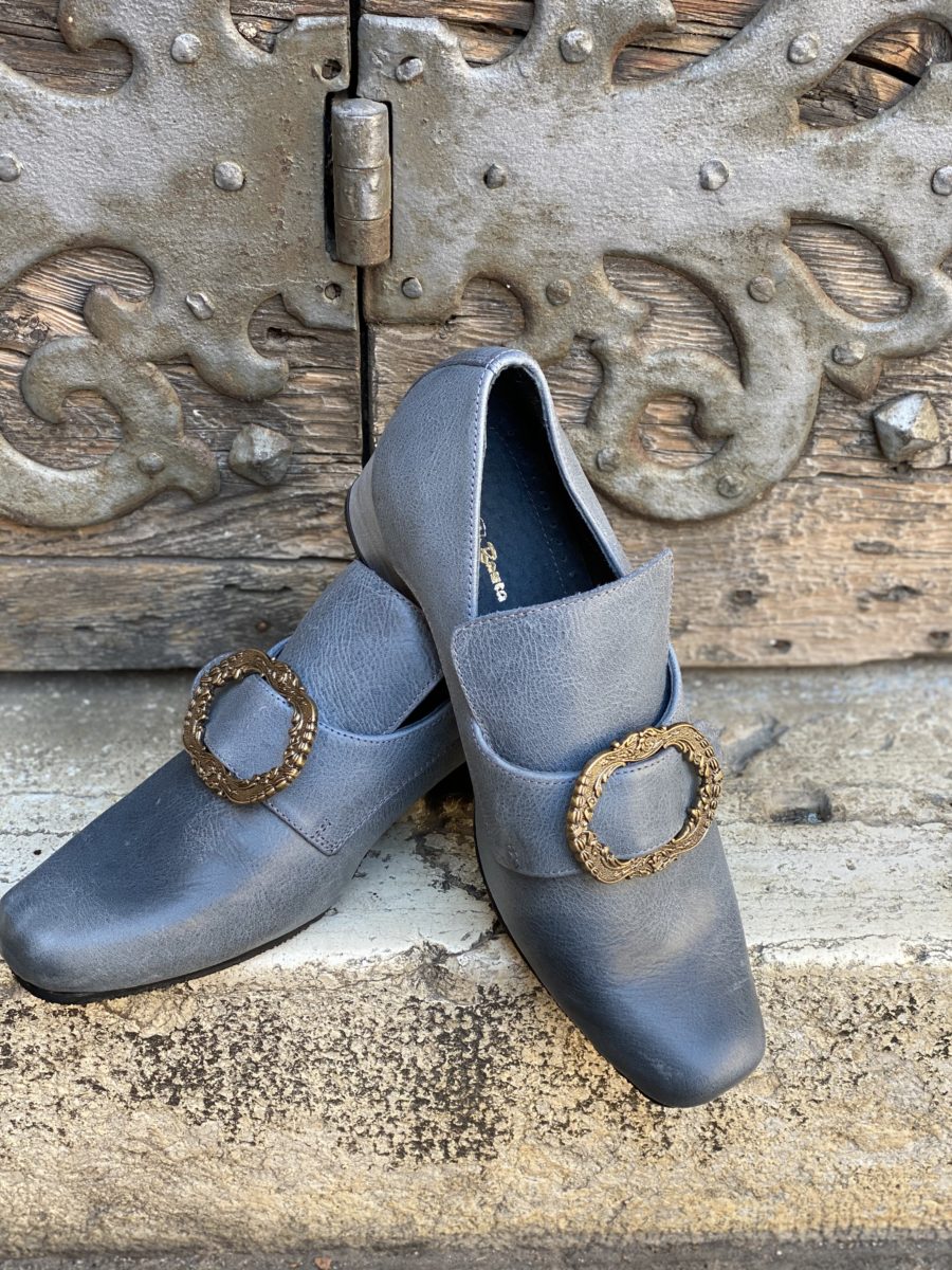 Историческая обувь, воспроизводство 18 -го века, сделанная в коже с закрытием липучки.