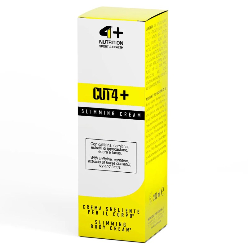 Cut4+ Slimming Cream из 4+ питания — это гелевой крем, нанесенный кофеином, карнитином, экстрактами конного каштана, Edera и Fucus.