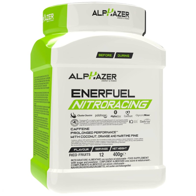 Enerfuel Nitroraing of Alphazer-это пищевая добавка, основанная на углеводах (сильно разветвленные Cycloodesters, изомальтозу) с добавлением L-цитруллины, бета-аланина, глицерина, таурина, L-глюта, разрыва и кофеина, пикногена, лифильного кокона и экстракта Герициум.