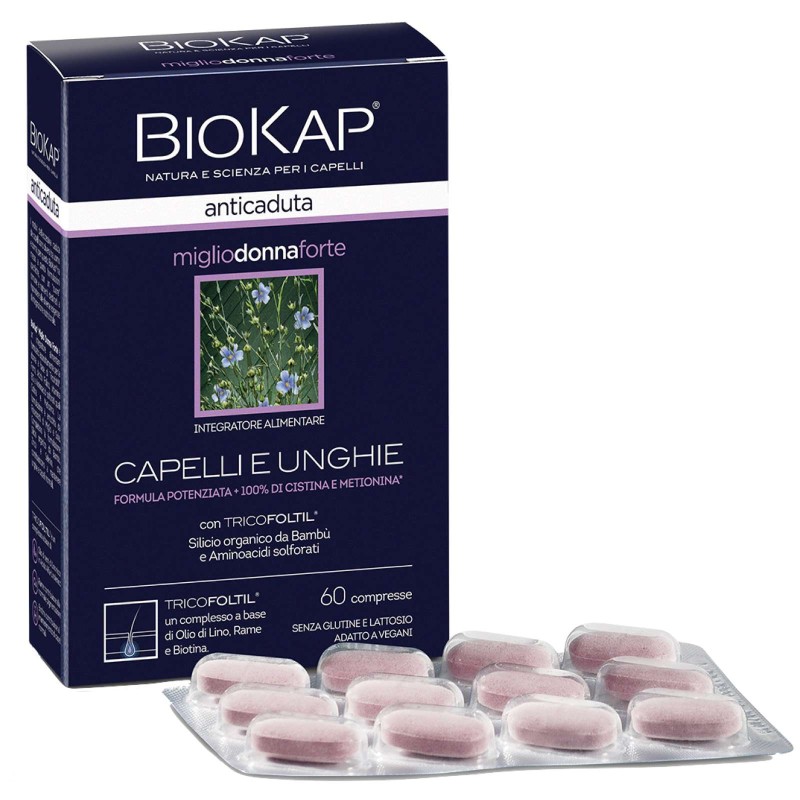Biokap Miglio Forte Di Bios Line — это натуральная добавка, которая действует нацеливаемо на выпадение волос и помогает поддерживать здоровые ногти.