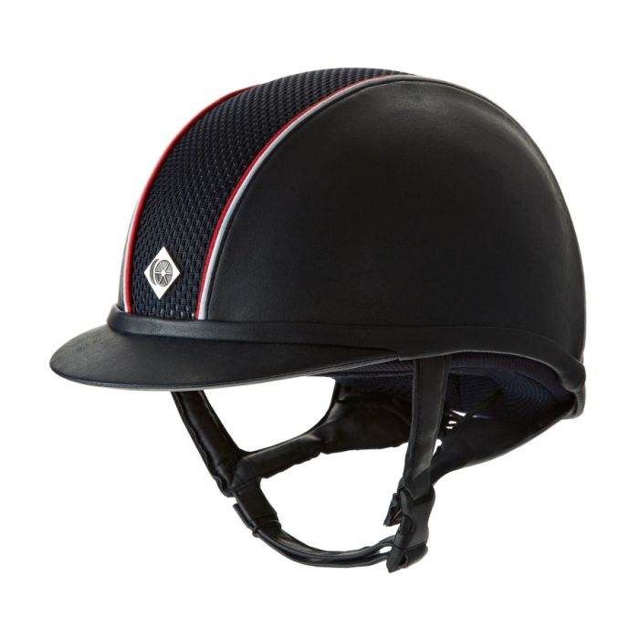 Это тот же шлем, что и у выездковой всадницы Гранпри Шарлотты Дюжарден! Этот низкопрофильный шлем с центрально расположенными передними и задними вентиляционными отверстиями, покрытыми сеткой, впечатляюще сочетает в себе стиль и функциональность. Имеет красивый вид темно-синей кожи и красно-белую хлопковую окантовку.