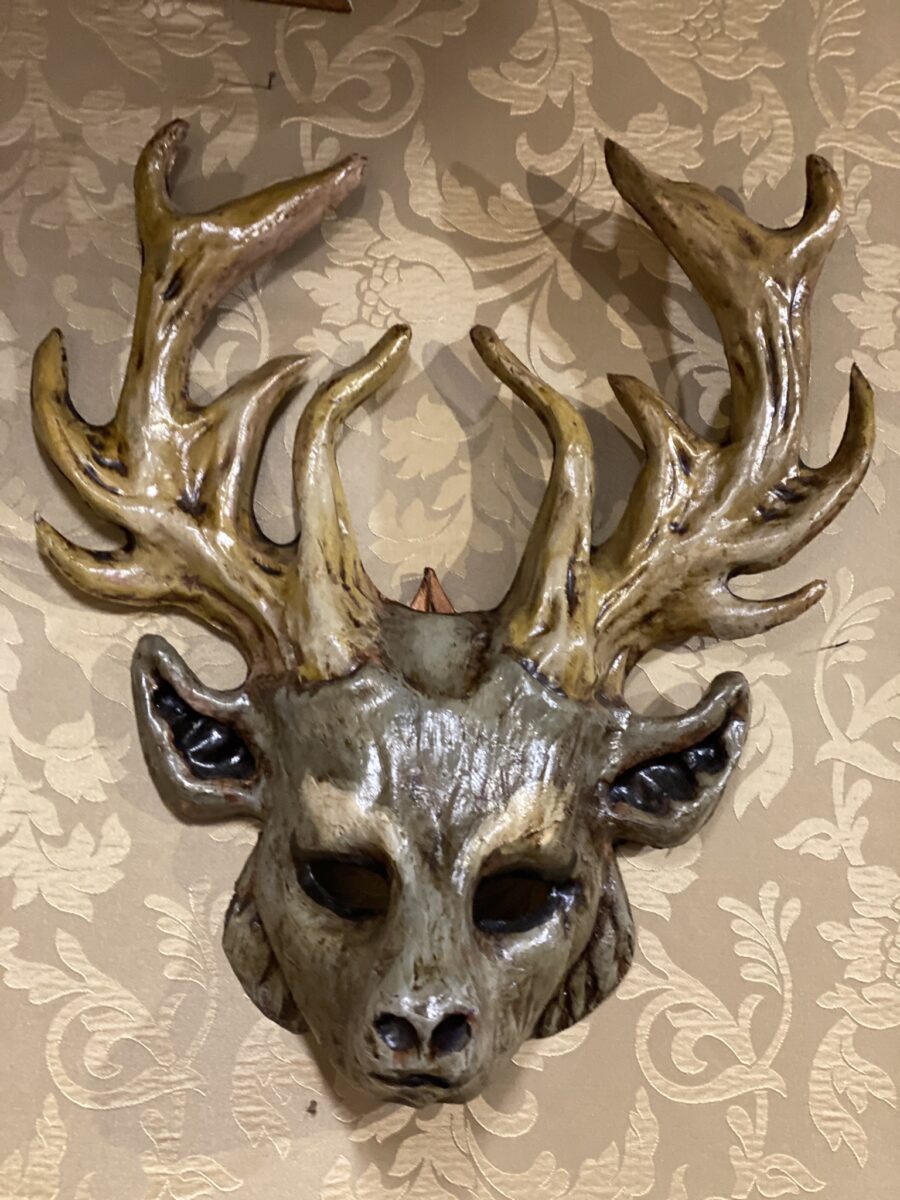 Маска ручной работы в Papermache, украшенная акриловыми цветами, золотым/серебряным листом.