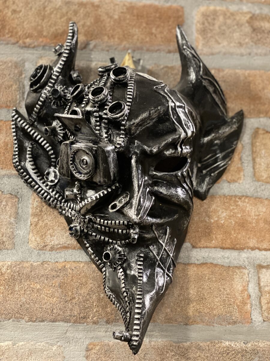 Маска ручной работы в Papermache, украшенная акриловыми цветами, золотым/серебряным листом.
