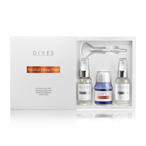 Перед использованием кислоты очистите кожу и обезжирьте ее PRE PEEL LOTION. Налейте примерно 2,5-5 мл Revital Deep Peel в мерный стаканчик, в зависимости от размера обрабатываемой зоны. Налитый раствор наносите равномерно, быстрыми движениями, тонким слоем, используя кисть. Оставьте на 3–10 минут. Чтобы успокоить кожу и повысить ее pH, нанесите нейтрализатор NEUTRALIZER на сухую кожу на 2-5 минут. По истечении этого времени смойте водой. Завершите процедуру защитным кремом линии DIVES Med. Глобальная регенерация.