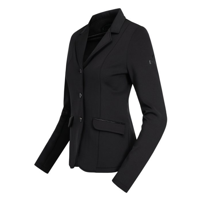 Эта модная куртка для соревнований сочетает в себе стиль и комфорт. Благодаря индивидуальному крою и дышащему эластичному материалу он обеспечивает оптимальную свободу движений и элегантный силуэт. Куртка оснащена двумя практичными прорезными карманами, изысканно украшенными декоративными стразами для создания шикарного образа. Прорези сзади обеспечивают дополнительный комфорт в седле. Эта куртка, изготовленная из 90 % полиэстера и 10 % эластана, обеспечивает идеальный баланс между гибкостью и долговечностью и идеально подходит для выступлений на ринге.