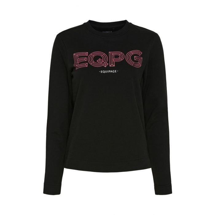 Изящный свитшот из зимней коллекции Equipage. Толстовка легкая, имеет стильный металлический принт с логотипом и выполнена из мягкой ткани с начесом.