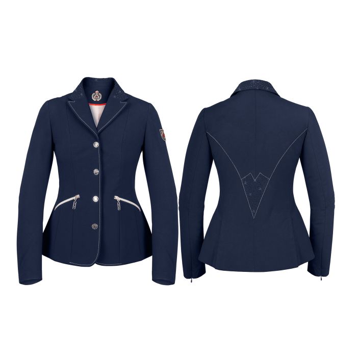 Исключительно элегантная куртка для соревнований, изготовленная из очень тонкой, эластичной, дышащей и водонепроницаемой мягкой оболочки. Простота в уходе – можно стирать в машине и не требует глажки. Украшен заклепками в тон. Мастерски отделано блестящей вышивкой.