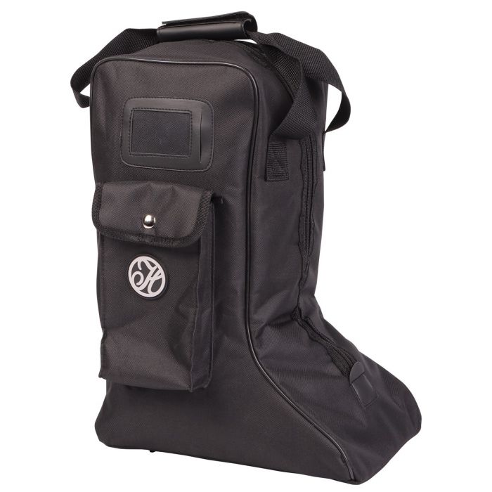 Сумка в форме ботинка, молния спереди. С небольшим карманом, который закрывается на кнопку. Две ручки в верхней части сумки, которые можно соединить с помощью куска искусственной кожи на одной ручке с помощью липучки.