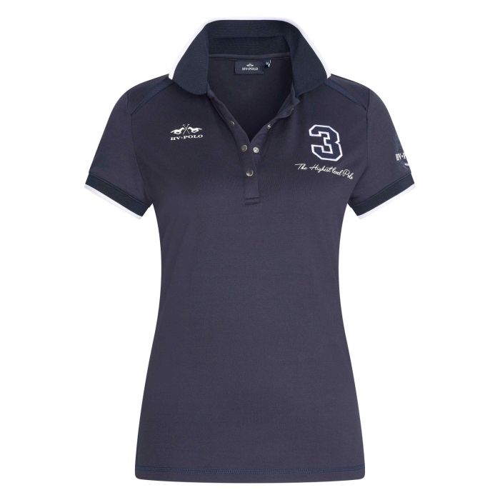 Спортивная рубашка-поло из летней коллекции HV Polo. Рубашка-поло изготовлена из функционального микса материалов с сетчатыми вставками на плечах. Эластичная ткань, тянущаяся в четырех направлениях, быстро сохнет и пропускает воздух. В результате рубашка обеспечивает оптимальную циркуляцию воздуха и идеальную температуру тела. Воротник-поло в рубчик и манжеты рукавов контрастного цвета. Красивый V-образный вырез с удобными блестящими кнопками придает рубашке женственный вид.