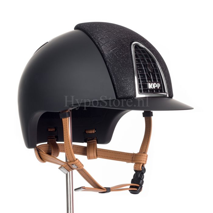 KEP Cromo T Black Galassia с подбородочным ремнем коньячного цвета еще раз показывает, насколько необычным может быть конный шлем. Концентрация моды, дизайна, мастерства и творчества в сочетании с качеством и производительностью на высшем уровне.