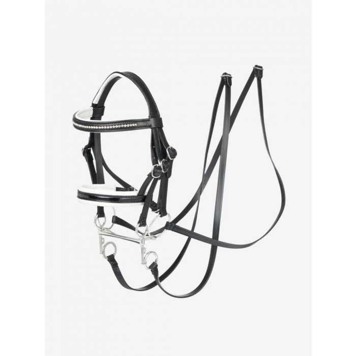 Уздечка из натуральной кожи, изготовленная для лошадей LeMieux Hobby Horses. Дополнен функциональными пряжками для идеальной подгонки и индивидуальной настройки в миниатюре. Шикарный передний ремешок, покрытый кристаллами, придает модели LeMieux вид, а носовой ремень из мягкой белой кожи и черной лакированной кожи создает аутентичный выездковый вид. В комплекте две удила и два комплекта поводьев.