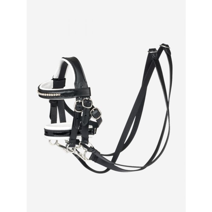 Уздечка из натуральной кожи, изготовленная для игрушечных пони LeMieux. Дополнен функциональными пряжками для идеальной подгонки и индивидуальной настройки в миниатюре. Шикарный передний ремешок, покрытый кристаллами, придает модели LeMieux вид, а носовой ремень из мягкой белой кожи и черной лакированной кожи создает аутентичный выездковый вид. В комплекте две удила и два комплекта поводьев.