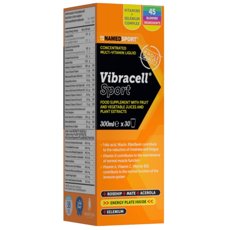 С витаминами A, C и E витаминами группы B Vibracell® Sport обогащен селеном и сложной смесью углеводов с различной скоростью ассимиляции.