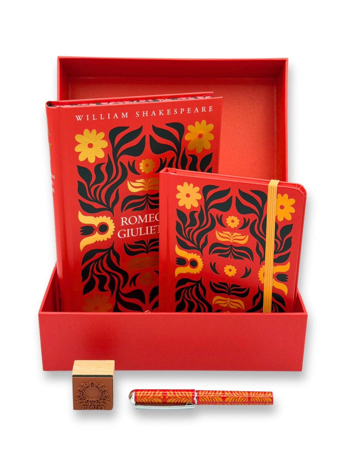 Самые любимые трагедии Шекспира, вместе с его прекрасными рифмами, поставляются в драгоценном наборе для персонализации всех ваших любимых историй. Этот подарочный набор содержит «Ромео и Джульетту» и «Любовные сонеты» в элегантном и изысканном оформлении, а также блокнот, ручку и штамп, чтобы сделать каждую книгу в вашей библиотеке уникальной. Что может быть прекраснее, чем держать в руках любимый роман вместе с драгоценными предметами, которые могут перенести вас прямо