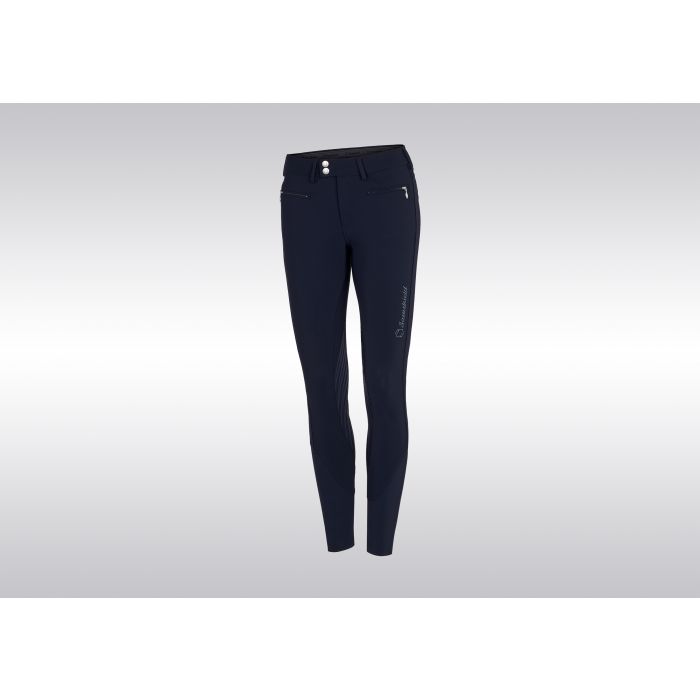 Бриджи Adèle обеспечивают комфорт и технические характеристики гонщикам. Индивидуальный дизайн с использованием износостойкой эластичной ткани и складок на спине обеспечивает идеальную посадку наездника. Бриджи Adele создают эффект второй кожи для оптимального комфорта. Эластичная ткань гарантирует высокую воздухопроницаемость и защиту от ветра. Силиконовый наколенник обеспечивает устойчивость и фиксацию в седле. Компрессионная ткань обеспечивает идеальную посадку бриджей. Эластичная лента внутри пояса оснащена силиконом, который не дает рубашке подниматься. Благодаря особой конструкции ткани бриджи Adele обеспечивают защиту от ультрафиолетовых лучей. Бриджи украшены логотипом Swarovski® Samshield на бедре и кристаллической тканью Swarovski® на задних карманах, сочетая в себе технические характеристики и элегантность.