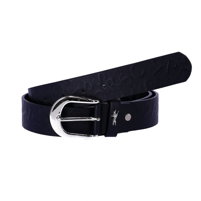 Современный ремень из искусственной кожи с принтом логотипа. Закончено металлической лошадью.