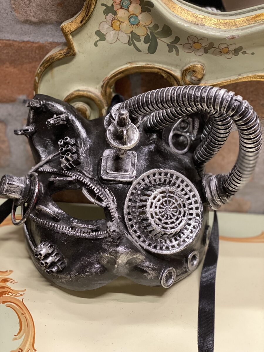 Маска ручной работы в Papermache, украшенная акриловыми цветами, золотым/серебряным листом.